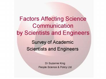 Factors Affecting Science Communication by Scientists and Engineers PowerPoint PPT Presentation