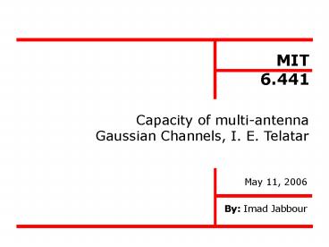 Capacity of multi-antenna Gaussian Channels, I. E. Telatar PowerPoint PPT Presentation