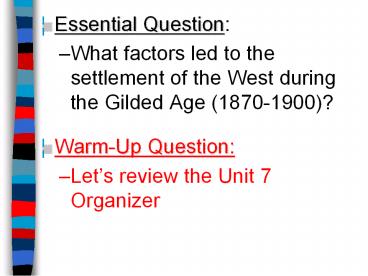 during the Gilded Age (1870-1900)? - Warm-Up Question