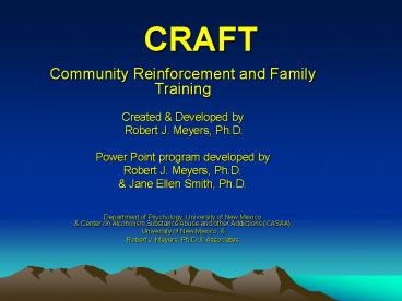 36CRAFT Randomized Drug StudyMeyers, Miller,