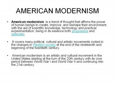 <Notice: Removed> AMERICAN MODERNISM PowerPoint PPT Presentation