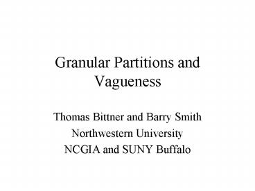 - Thomas Bittner and Barry Smith