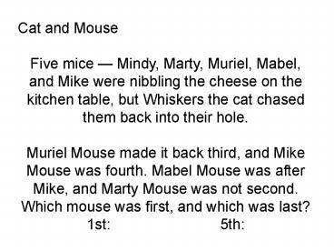 1Cat and Mouse Five mice Mindy, Marty, Muriel,