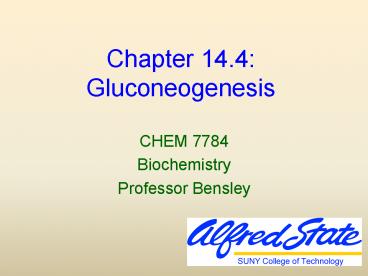 <Notice: Removed> Chapter 14.4: Gluconeogenesis PowerPoint PPT Presentation