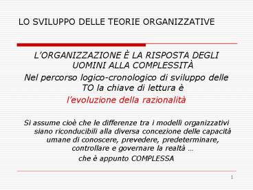 Title: LO SVILUPPO DELLE TEORIE ORGANIZZATIVE