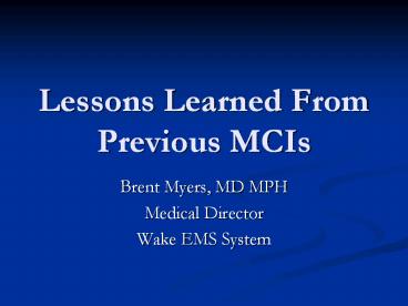 <Notice: Removed> Lessons Learned From Previous MCIs PowerPoint PPT Presentation