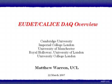 • Full blown Software DAQ (RHUL, UCL, IC)