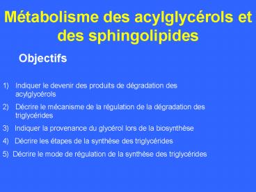 1Métabolisme des acylglycérols et des