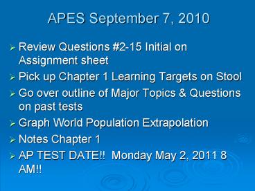 <Notice: Removed> APES September 7, 2010 PowerPoint PPT Presentation