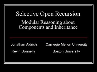 <Notice: Removed> Selective Open Recursion Modular Reasoning about Components and Inheritance PowerPoint PPT Presentation