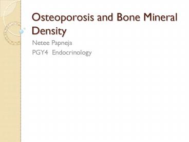 epidemiology, and risk factors - To review the current Osteoporosis guidelines for