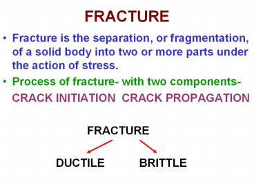 - Fracture is the separation, or fragmentation, of