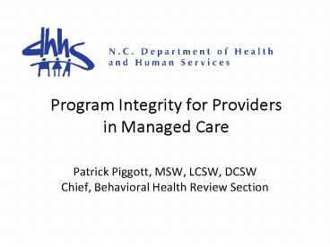 <Notice: Removed> Program Integrity for Providers in Managed Care PowerPoint PPT Presentation
