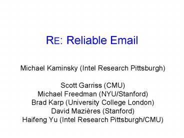 - Michael Kaminsky (Intel Research Pittsburgh)