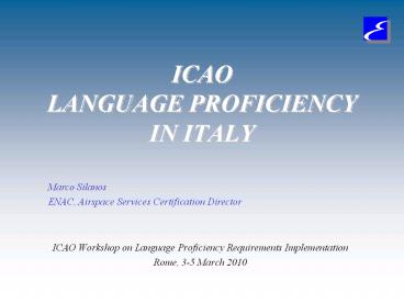 <Notice: Removed> ICAO LANGUAGE PROFICIENCY IN ITALY PowerPoint PPT Presentation