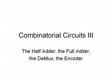 Combinatorial Circuits III PowerPoint PPT Presentation