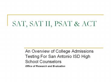 SAT, SAT II, PSAT PowerPoint PPT Presentation