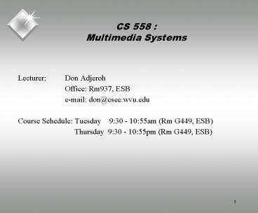 <Notice: Removed> CS 558 : Multimedia Systems PowerPoint PPT Presentation