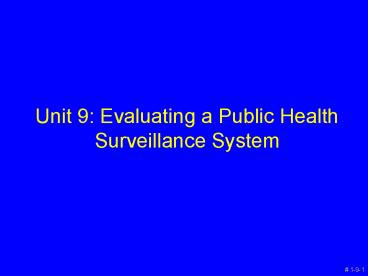 1Unit 9 Evaluating a Public Health Surveillance