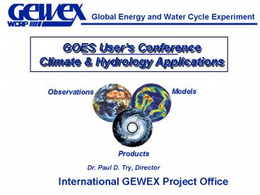 Title: Global Energy and Water Cycle Experiment