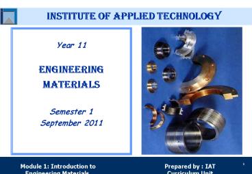 Institute of Applied Technology Year 11 Engineering Materials Semester 1 September 2011 * – PowerPoint PPT presentation