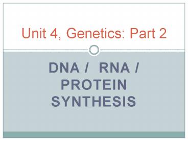 Title: Unit 4, Genetics: Part 2