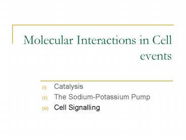 <Notice: Removed> Molecular Interactions in Cell events PowerPoint PPT Presentation