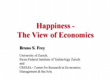 Happiness - The View of Economics PowerPoint PPT Presentation