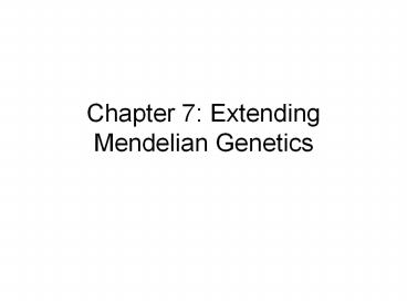 Chapter 7: Extending Mendelian Genetics PowerPoint PPT Presentation