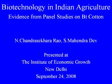 Title: Biotechnology in Indian Agriculture Evidence from Panel Studies on Bt Cotton