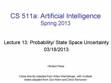 <Notice: Removed> CS 511a: Artificial Intelligence Spring 2013 PowerPoint PPT Presentation
