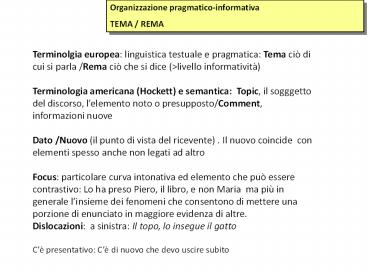 pragmatica Tema ciò di cui si parla /Rema ciò