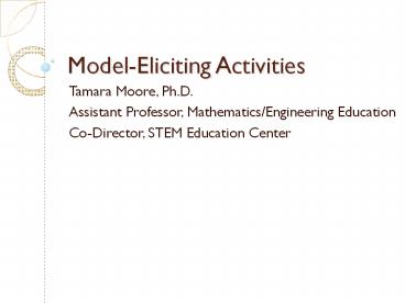 <Notice: Removed> Model-Eliciting Activities PowerPoint PPT Presentation
