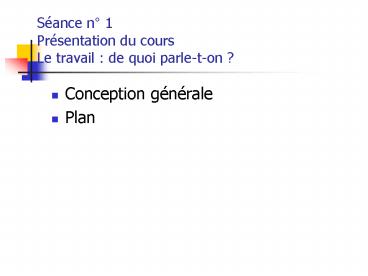 1Séance n 1Présentation du coursLe travail de