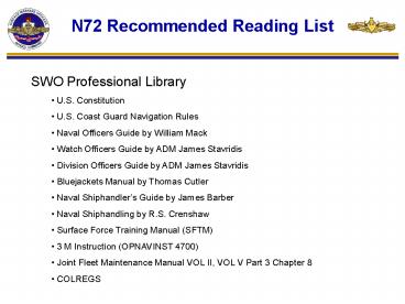 N72 Recommended Reading List PowerPoint PPT Presentation