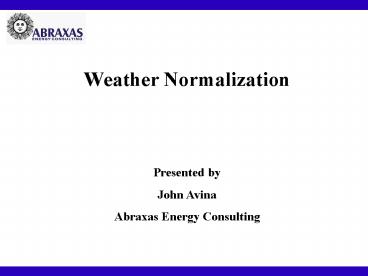 1Weather Normalization Presented by John