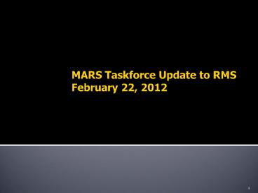 <Notice: Removed> MARS Taskforce Update to RMS February 22, 2012 PowerPoint PPT Presentation