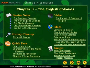 Chapter 3 The English Colonies