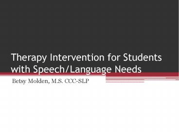 Therapy Intervention for Students with Speech/Language Needs PowerPoint PPT Presentation