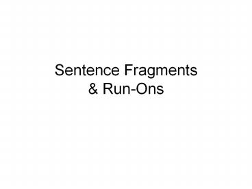 • A SENTENCE FRAGMENT fails to be a sentence in the