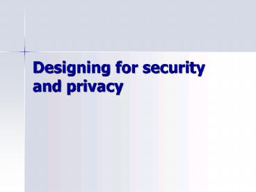 <Notice: Removed> Designing for security and privacy PowerPoint PPT Presentation