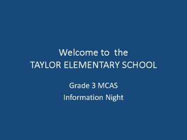Title: Welcome to the TAYLOR ELEMENTARY SCHOOL