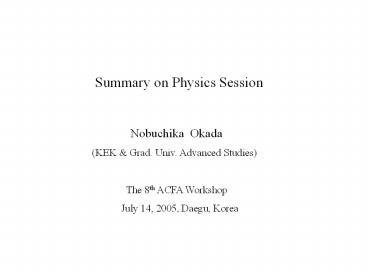 <Notice: Removed> Summary on Physics Session PowerPoint PPT Presentation