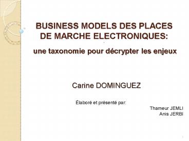 <Notice: Removed> BUSINESS MODELS DES PLACES DE MARCHE ELECTRONIQUES: . PowerPoint PPT Presentation