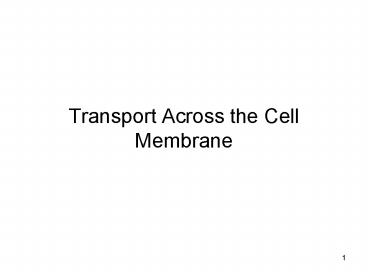 Transport Across the Cell Membrane PowerPoint PPT Presentation