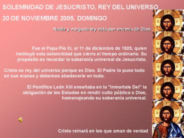1SOLEMNIDAD DE JESUCRISTO, REY DEL UNIVERSO 20 DE