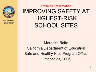 Title: Archived Information IMPROVING SAFETY AT HIGHEST-RISK SCHOOL SITES