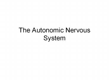 The Autonomic Nervous System PowerPoint PPT Presentation