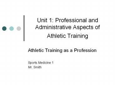 Unit 1: Professional and Administrative Aspects of Athletic Training PowerPoint PPT Presentation