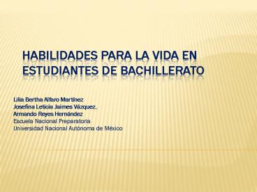 HABILIDADES PARA LA VIDA EN ESTUDIANTES DE BACHILLERATO PowerPoint PPT Presentation